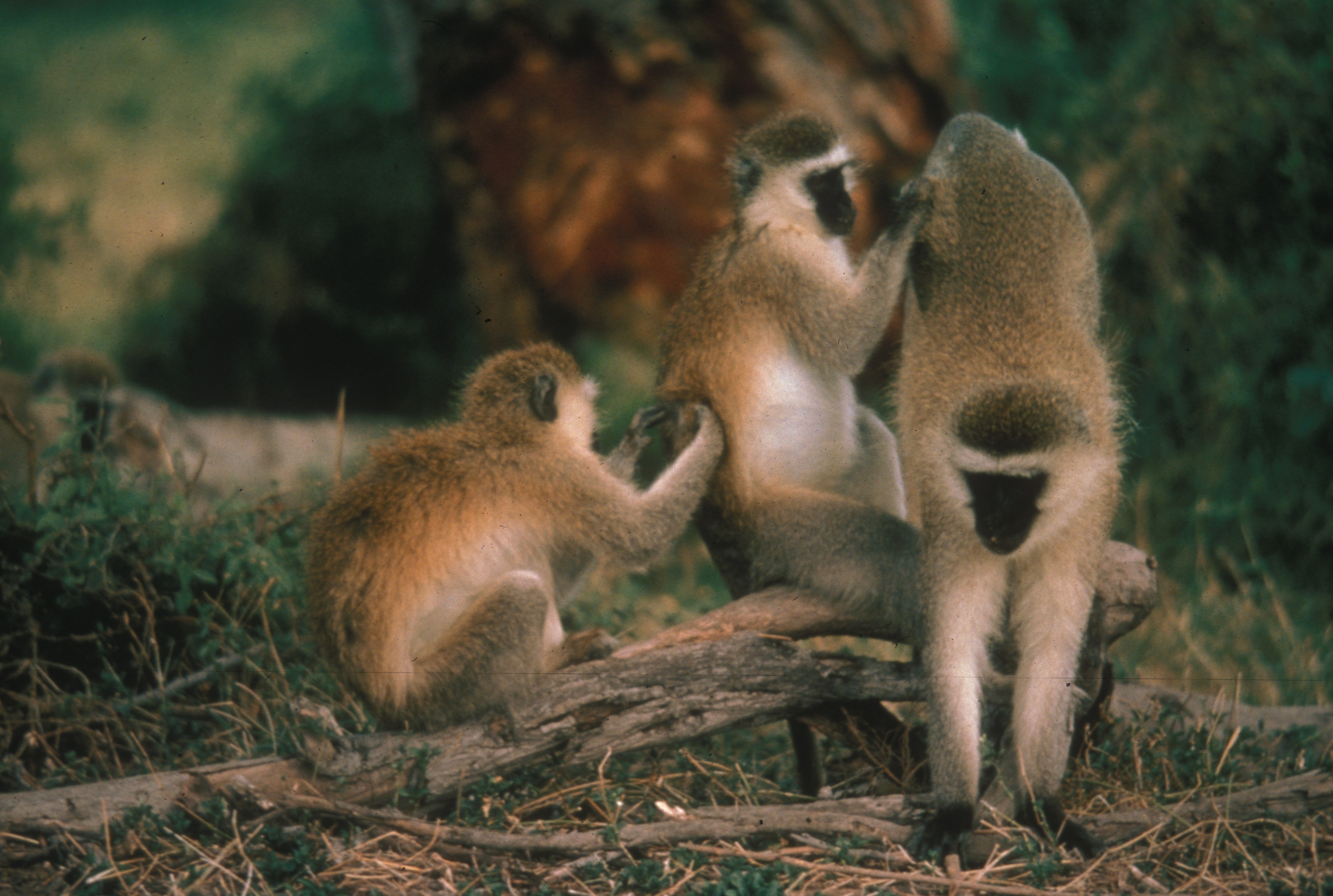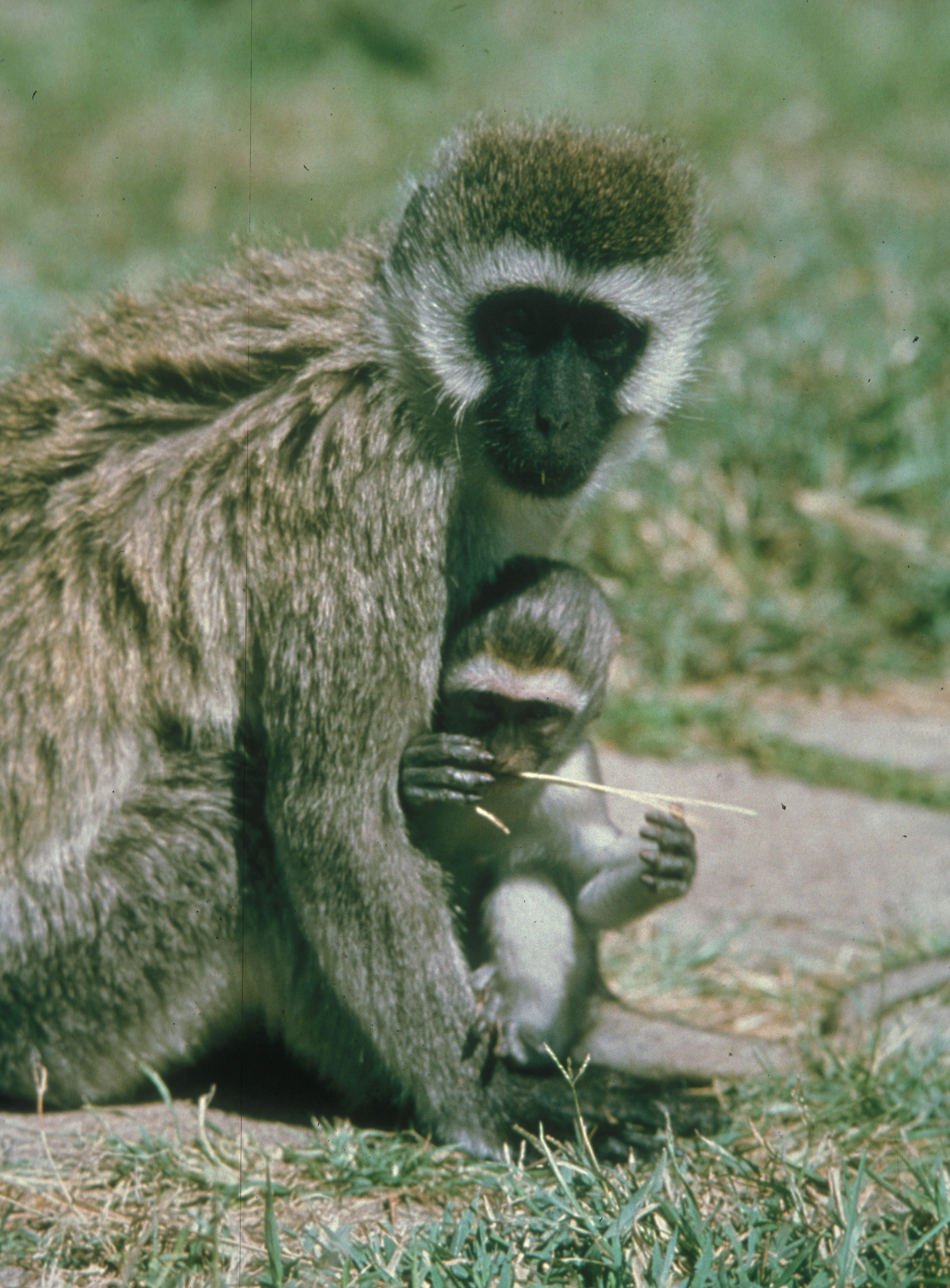 | Notice the use of a grass stem as a tool to go "fishing" for termites |