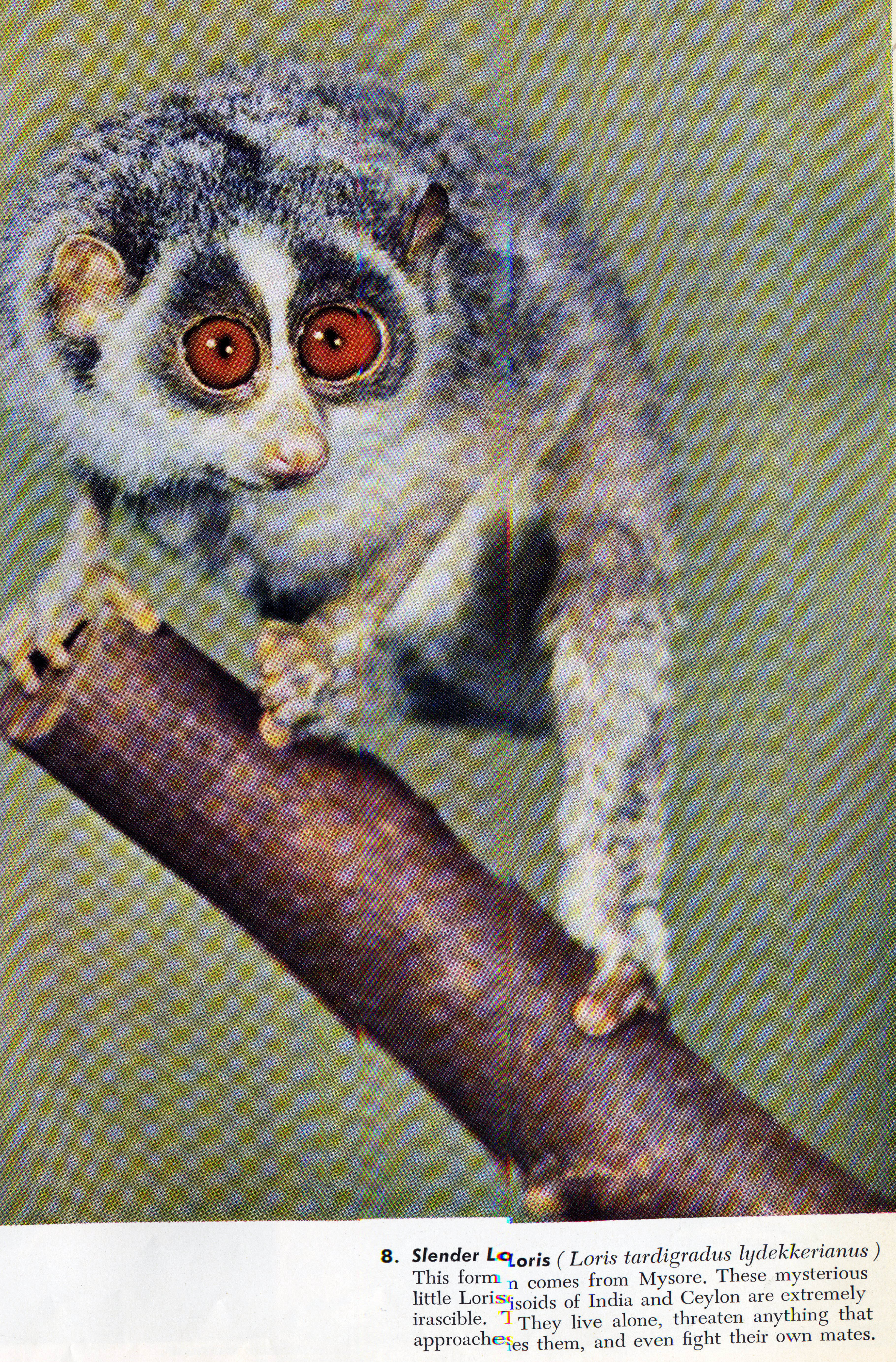 | Above: two slow lorises Below: a slender loris Left: a "bushbaby" (Galago)